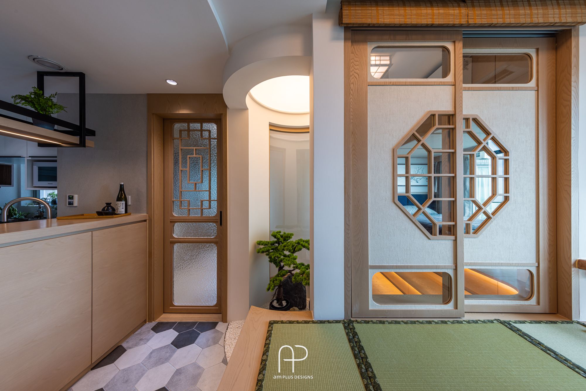 amPLUS Designs 以「新中式庭園風」為設計理念,為映灣園住宅打造充滿自然寫意的家居空間。此設計揉合傳統中式建築特色與現代簡約風格,並巧妙運用自然元素,營造出和諧寧靜的居家氛圍。
